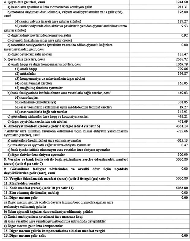 "Naxçıvanbank"ın əməliyyat mənfəəti 2022-ci ilin 1-ci rübü ilə müqayisədə 2023-cü ilin 1-ci rübündə 696 min manat və ya 19,1% artaraq 4 milyon 331 min manat olub. Eyni zamanda, aktivlər üzrə mümkün zərərlərin ödənilməsi üçün xüsusi ehtiyatdan azad olmuş 725 min manat mənfəətə əlavə edilib.