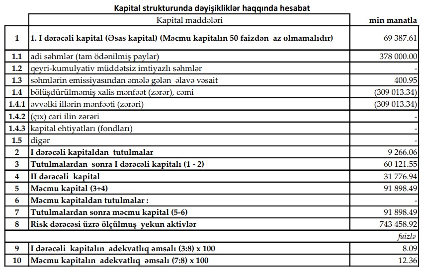 30 Mart 2023-cü il tarixində "Yelo Bank" 91 milyon 898 min manat məcmu kapitala malik olub. Bank ötən ilin sonunda 93 milyon 404 min manat məcmu kapitala malik idi.
