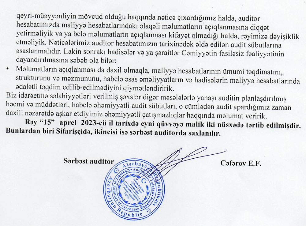 "Xəzər Kredit İttifaqı"nın 2022-ci ilin yekunları üzrə maliyyə hesabatları