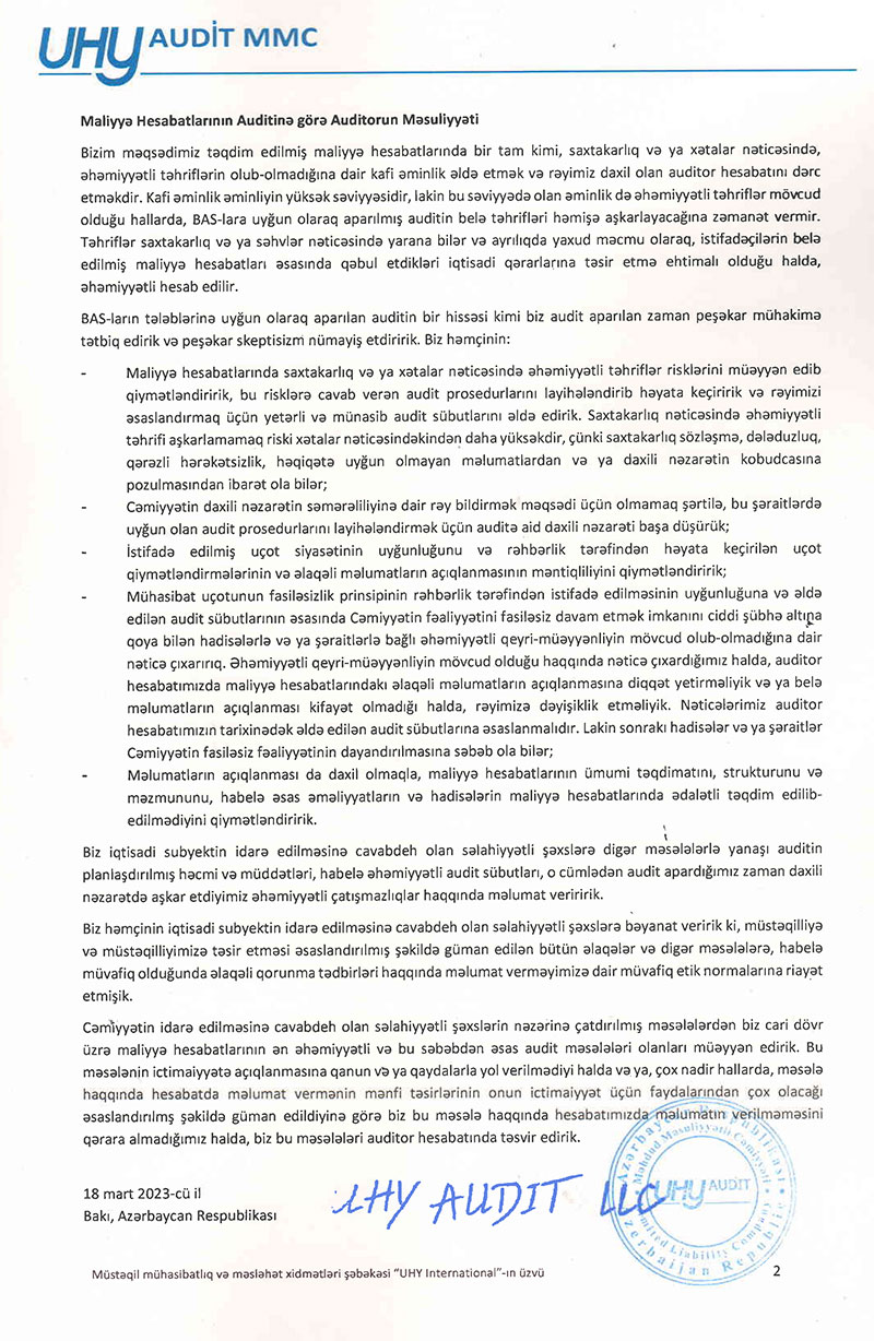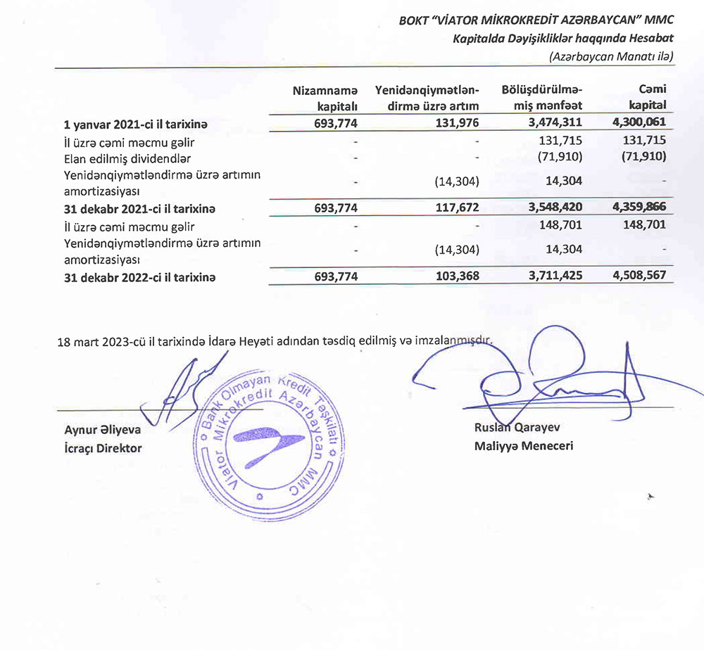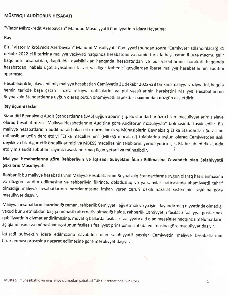 BOKT "Viator Mikrokredit Azərbaycan" MMC-nin 2022 - ci ilin sonuna olan maliyyə və audit hesabatı