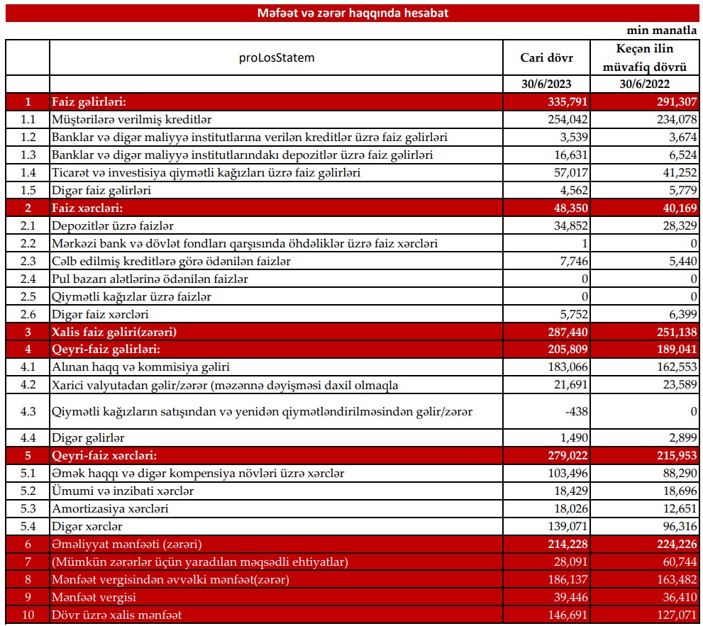 Azərbaycan bankı 147 milyon manata yaxın xalis mənfəət açıqladı