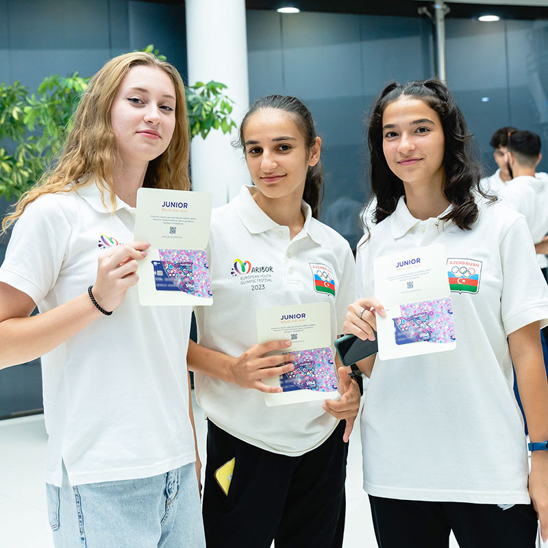 (®) AccessBank Milli Olimpiya Komitəsinin Məğrur Tərəfdaşı olan VISA şirkəti ilə birlikdə Avropa Yeniyetmələrinin XVII Yay Olimpiya Festivalında iştirak edəcək yeniyetmə idmançılara VISA Platinum əsaslı myCard Junior kartlarını təqdim edib.