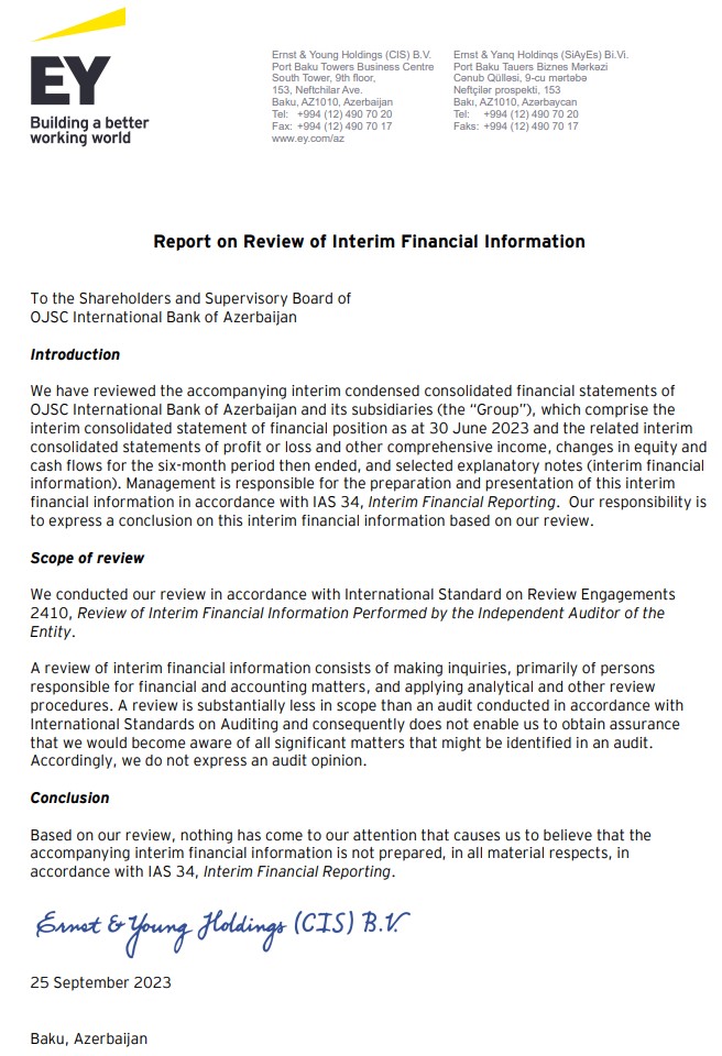 ABB-nin 6 aylıq nəticələrinə EY audit şirkəti ilkin rəy verdi: 163 milyon manat xalis mənfəət