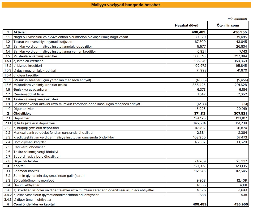 Marja.az-ın məlumatına görə, o cümlədən, Bankın istehlak kreditləri portfeli 25 milyon 971 min manat artaraq 185 milyon 340 min manata, biznes kreditləri portfeli 7 milyon 127 min manat artaraq 102 milyon 972 min manata, ipoteka kreditləri portfeli isə 30 milyon 128 min manat artaraq 71 milyon 998 min manata yüksəlib.