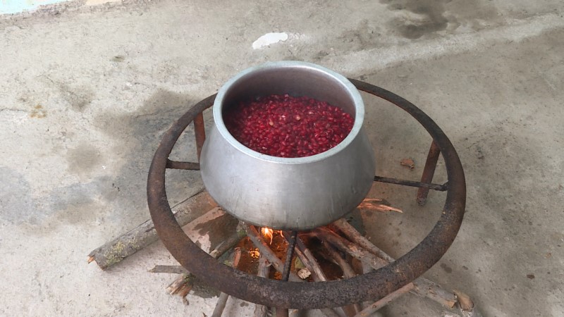 Ocaq üzərindən götürülən bişmiş nar dənələri süzgəcdən keçirilməklə tumları çıxardılır. Əldə edilən narın şirəsi yenidən təmiz qaba süzülür. 20-25 dəqiqə ərzində vam odda qaynadılan şirəyə duz tökülür. Bundan sonra tam bişən məhsul ocaqdan götürülərək soyudulur.