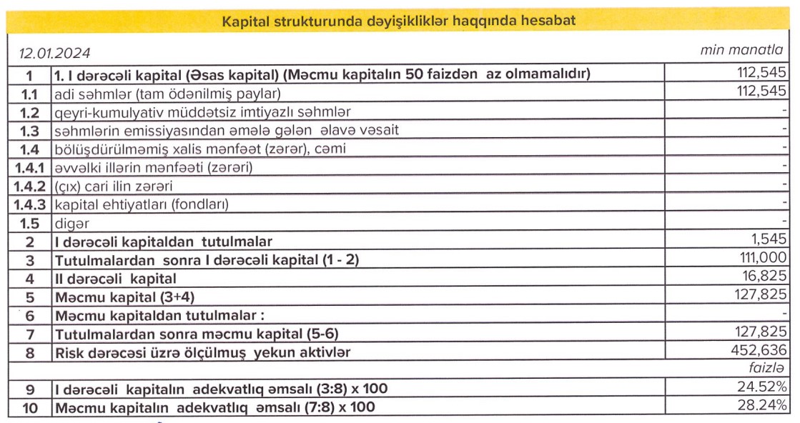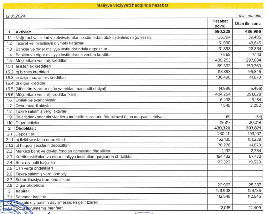 Daha bir bankın böyüklüyü 500 milyon manat səviyyəsini keçib