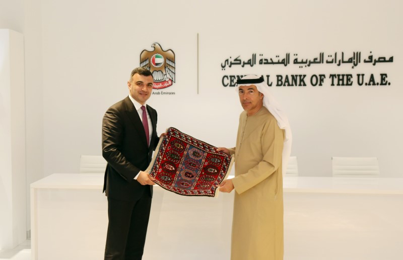 "Birləşmiş Ərəb Əmirliklərinə (BƏƏ) işgüzar səfərimiz çərçivəsində ilk görüşümüz Əbu-Dabi şəhərində BƏƏ-nin Mərkəzi Bankının sədri Xaled Məhəmməd Balama ilə oldu".