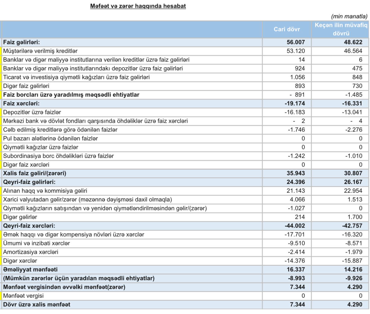 "Unibank" 2024-cü ilin 1-ci rübünü (yanvar-mart) 7 milyon 344 min manat xalis mənfəət ilə başa vurub.