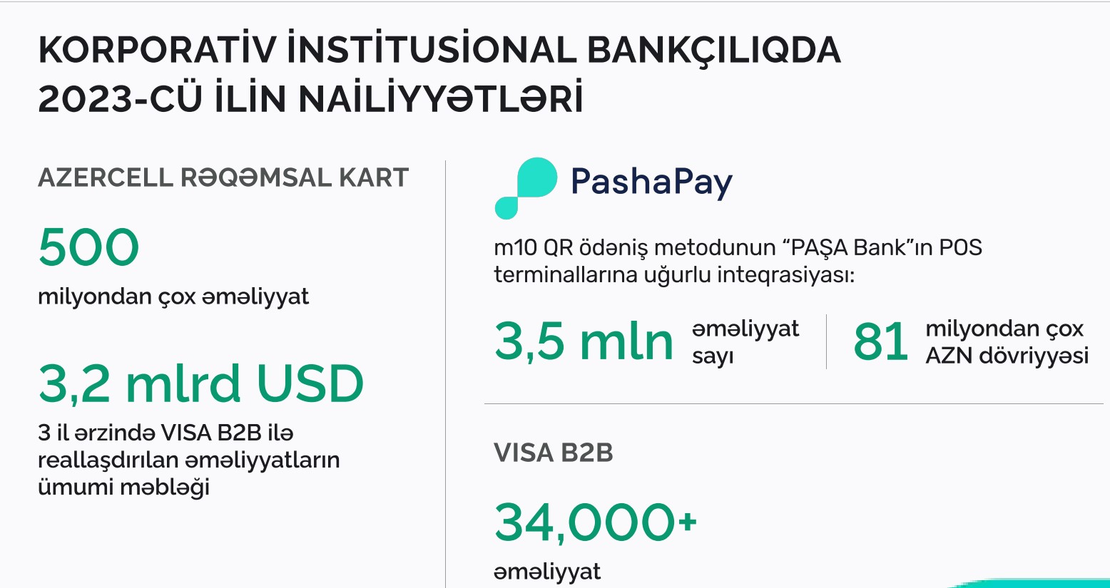 “PAŞA Bank”ın “Azercell Telekom” şirkətilə əməkdaşlığı çərçivəsində buraxılan kartlar (akart rəqəmsal kartı) ilə aparılmış əməliyyatların həcmi 2023-cü ildə 500 milyon manatdan çox olub.