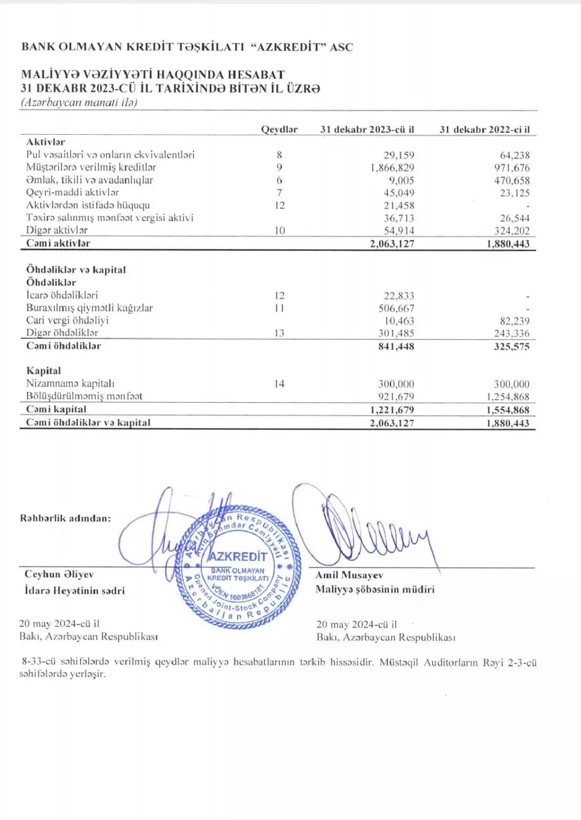 Ötən il "BOKT AzKredit"in kredit portfeli (müştərilərə verilmiş kreditlər) 1,9 dəfə artaraq 31 dekabr 2023-cü il tarixində 1 milyon 867 min manata çatıb.
