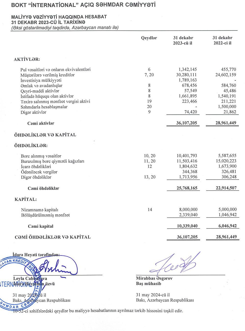 Ötən il "BOKT İnternational"ın kredit portfeli (müştərilərə verilmiş kreditlər) 5 milyon 678 min manat və ya 23,1% artaraq 30 milyon 280 min manata çatıb.