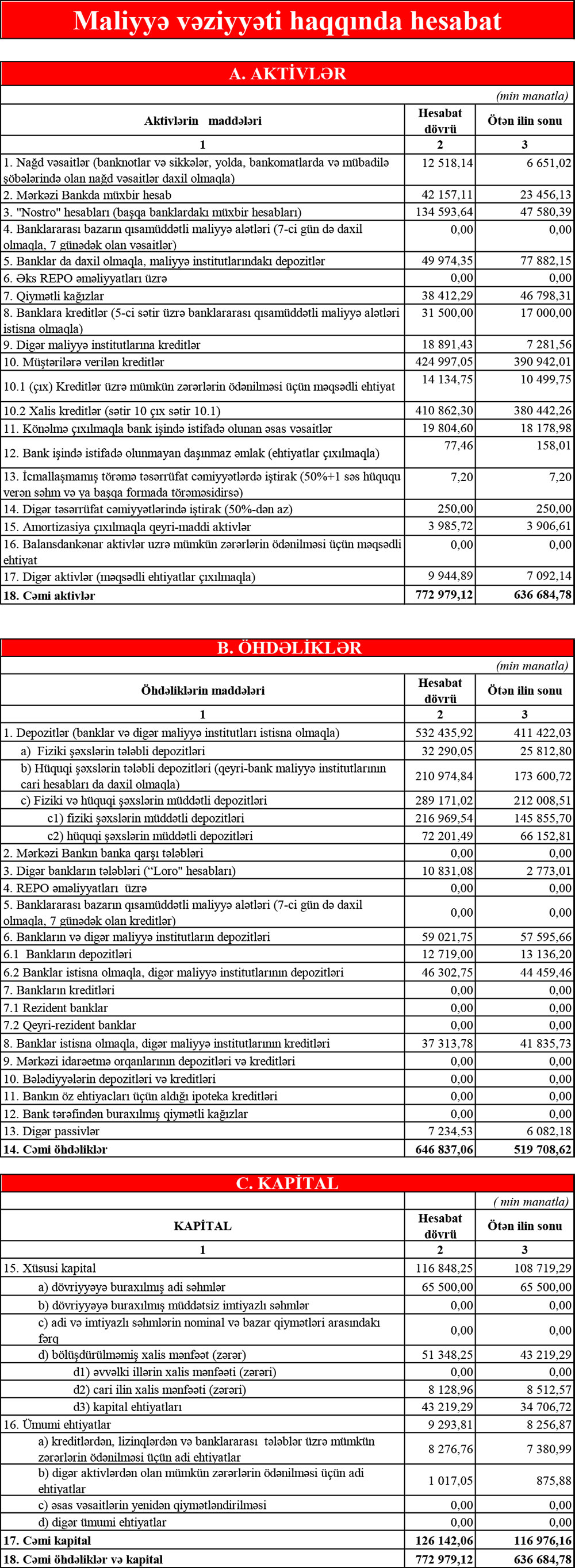 “Unibank”ın son maliyyə vəziyyəti məlum oldu