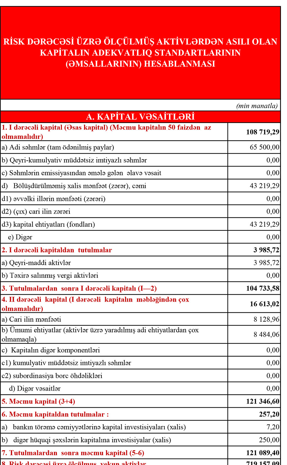 "Ziraat Bank Azərbaycan" 2024-cü ilin yanvar-iyun dövründə əməliyyat mənfəətindən 4 milyon 782 min manat aktivlər üzrə mümkün zərərlərin ödənilməsi üçün xüsusi ehtiyatın yaradılmasına ayrıb (2023-cü ilin eyni dövründə 6 milyon 71 min manat ayırmışdı).