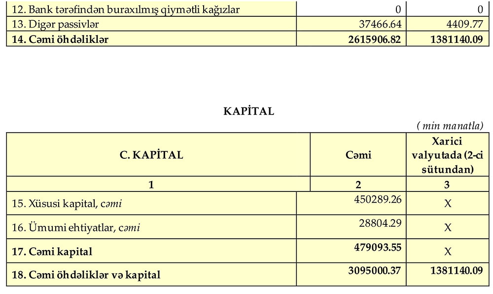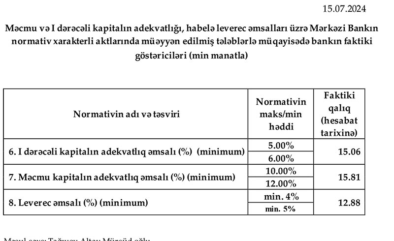 Müqayisə üçün qeyd edək ki, 2023-cü ilin eyni dövründə ehtiyatdan azad olmuş 2 milyon 592 min manat Bankın mənfəətinə əlavə olunmuşdu və mənfəət vergisi ödənilənədək mənfəəti 41 milyon 570 min manat təşkil etmişdi.