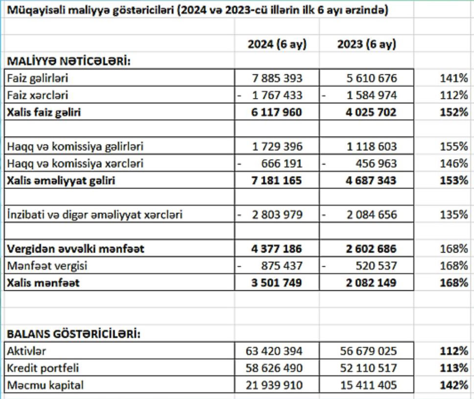 Kredit şirkətinin haqq və komissiya gəlirləri isə 55% artaraq 1 milyon 729 min manata qalxıb.