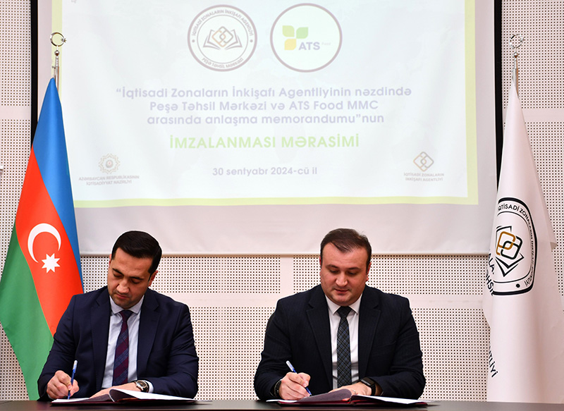 Sabah yüksək dağlıq ərazilərdə qar yağacaq - PROQNOZSentyabrın 30-da İqtisadi Zonaların İnkişafı Agentliyinin Peşə Təhsil Mərkəzi ilə “ATS Food” MMC arasında əməkdaşlığa dair Anlaşma Memorandumu imzalanıb. Sənədi Peşə Təhsil Mərkəzinin direktoru Kənan Bağırov və “ATS Food” MMC-nin direktoru Tural Hacıyev imzalayıblar.