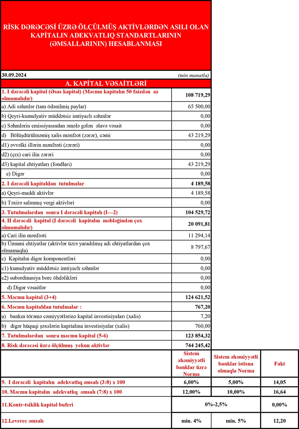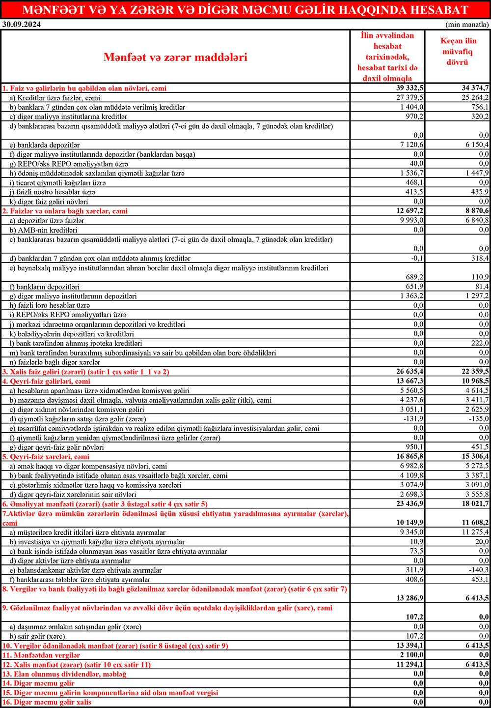 Türkiyənin dövlət bankı "Ziraat Bankası"nın Azərbaycandakı törəməsi olan "Ziraat Bank Azərbaycan" ASC 2024-cü ilin 9 ayını (yanvar-sentyabr) 11 milyon 294 min manat xalis mənfəət ilə başa vurub. Bank ötən ilin eyni dövrünü 6 milyon 414 min manat xalis mənfəət ilə bağlamışdı. Beləliklə, "Ziraat Bank Azərbaycan"ın xalis mənfəəti 2023-cü ilin 9 ayının yekunu ilə müqayisədə 2024-cü ilin 9 ayı ərzində 4 milyon 880 min manat və ya 76% artıb.