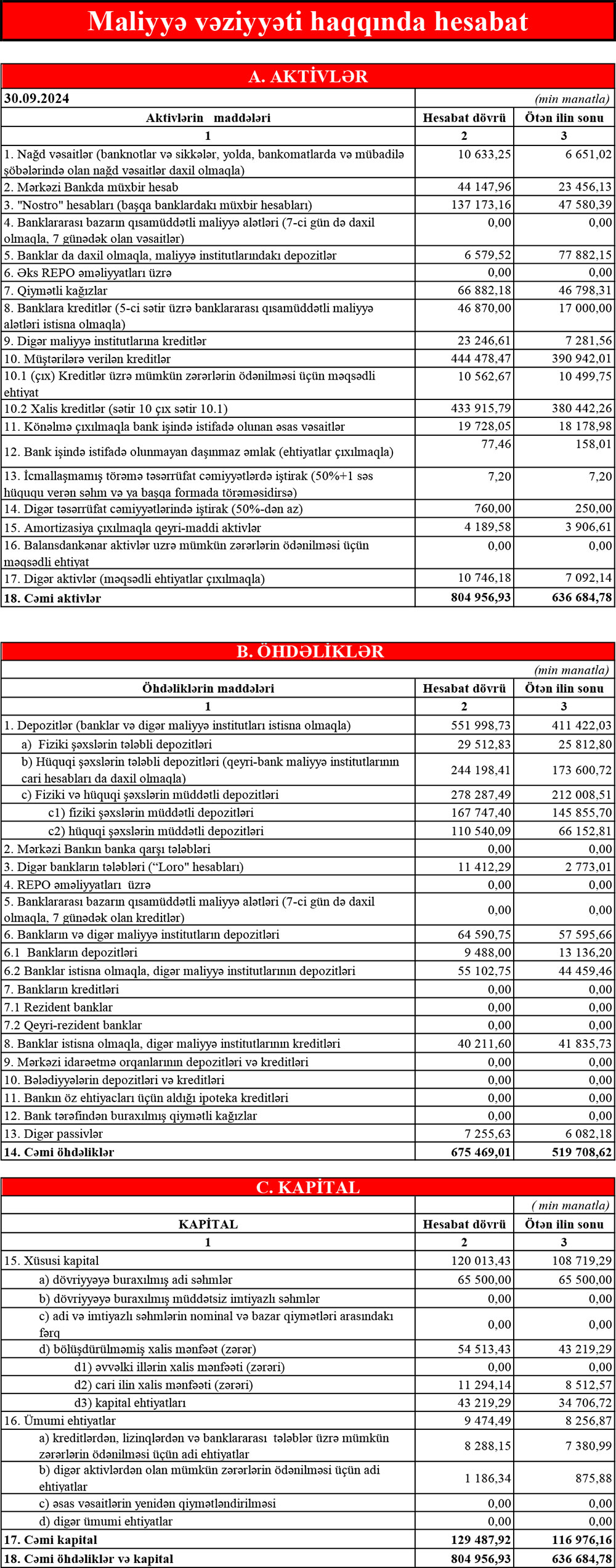 CƏMİ AKTİVLƏRİ 800 MİLYON MANAT SƏVİYYƏSİNİ KEÇİB