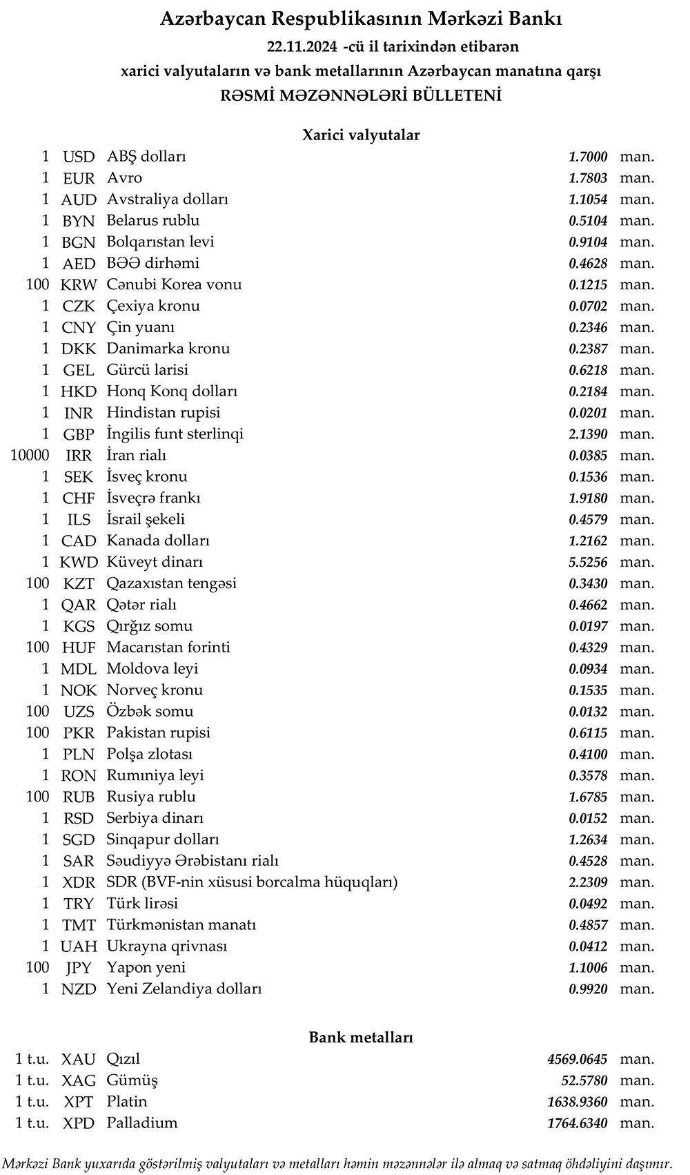 Dolların sabah üçün rəsmi məzənnəsi müəyyən olunub