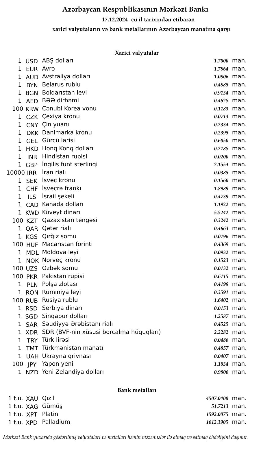 Dolların sabah üçün rəsmi məzənnəsi müəyyən olunub