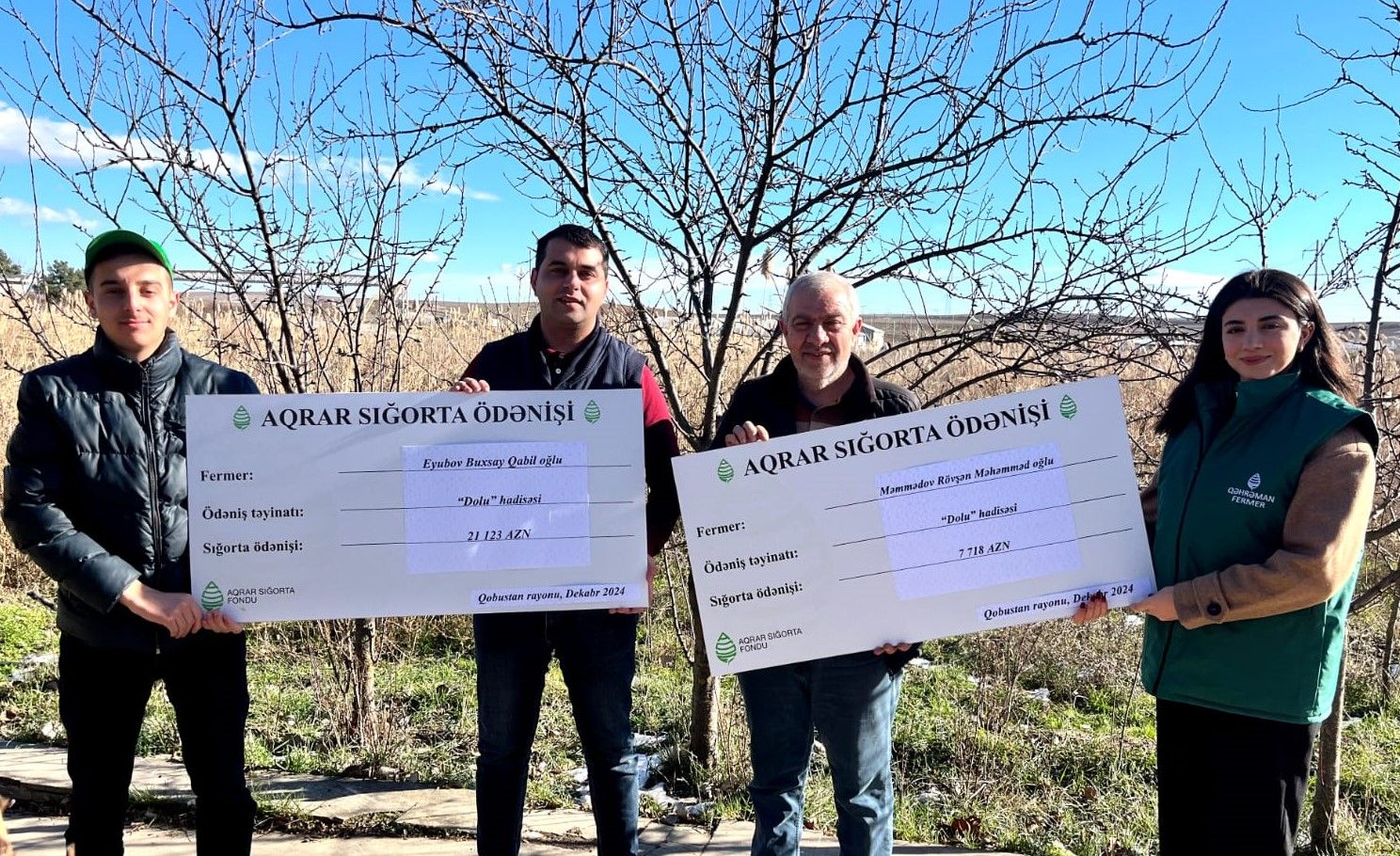 Dolu fermer Hikmət Məmmədovun buğda sahəsində məhsul itkisinə səbəb olub, dəymiş zərərə görə Aqrar Sığorta Fondu tərəfindən fermerə 8 052 manat sığorta ödənişi edilib.