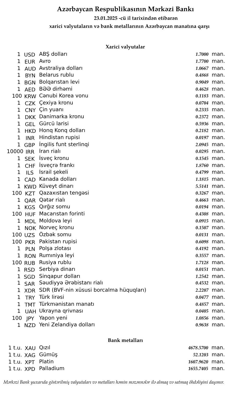 Dolların bazar ertəsi üçün rəsmi məzənnəsi müəyyən olunub