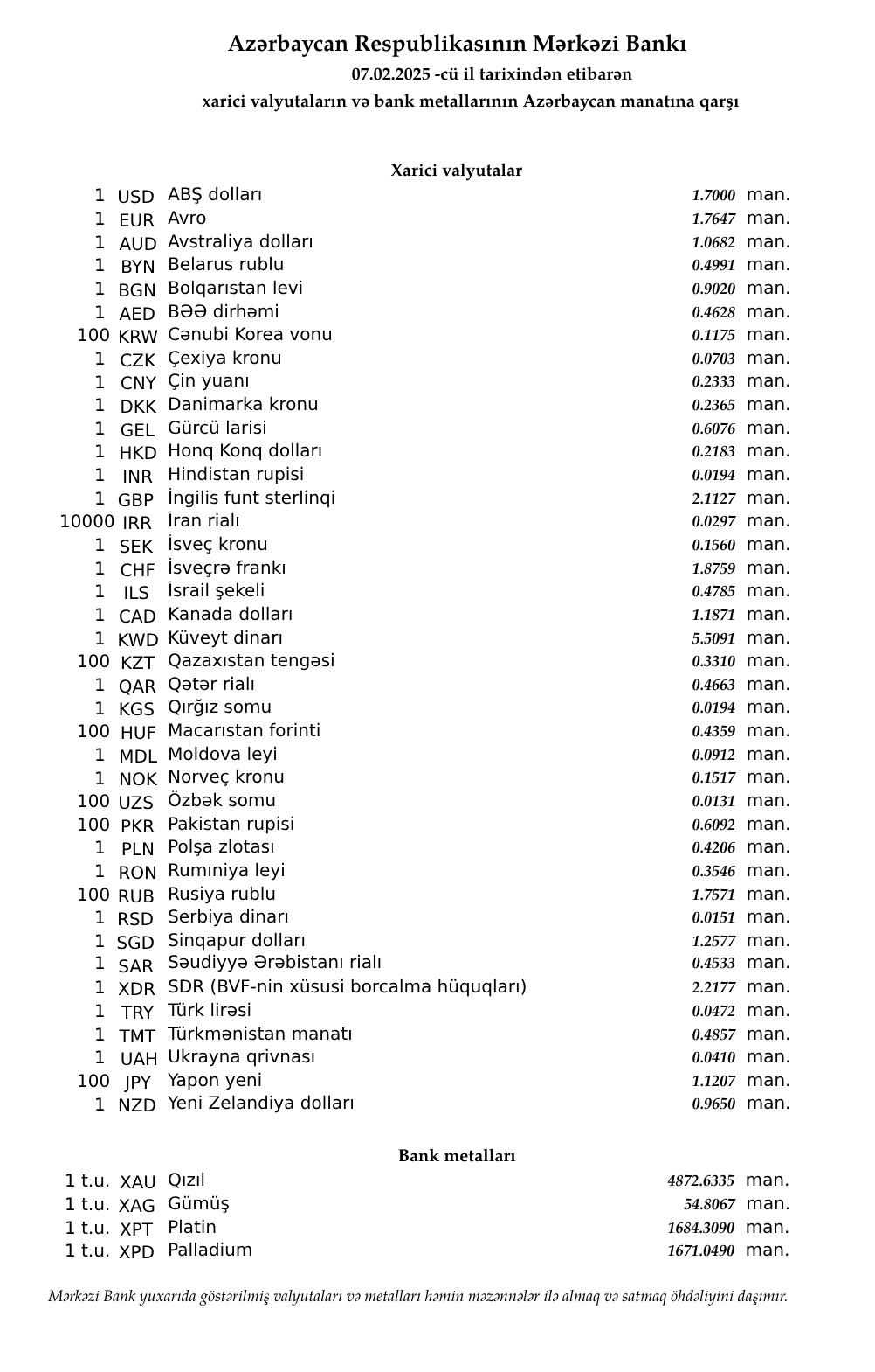 Dolların sabah üçün rəsmi məzənnəsi müəyyən olunub