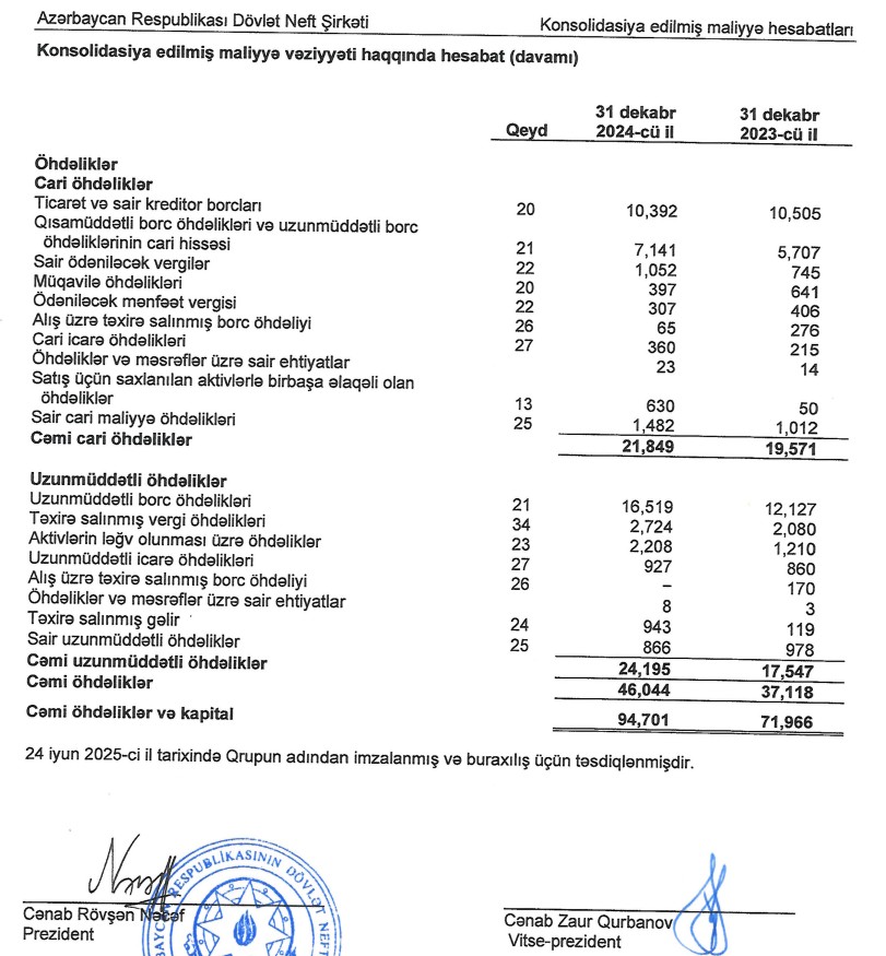 31 dekabr 2024-cü il tarixində SOCAR 94 milyard 701 milyon manat cəmi aktivlərə malik olub. Şirkət 2023-cü ilin sonunda 71 milyard 966 milyon manat cəmi aktivlərə malik idi.