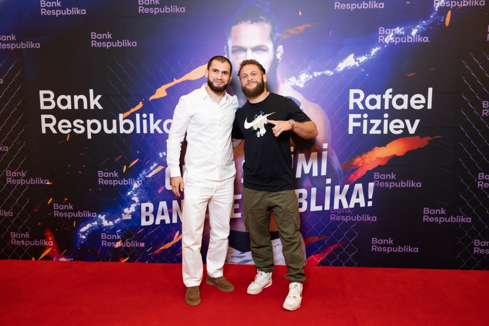 Tariyel İsmayılov: "İnanırıq ki, Rafael Fiziev parlaq qələbələr qazanaraq UFC kəmərini Azərbaycana gətirəcək". Rafael Fiziev: “Mən rinqdə hər zaman qələbə üçün çıxıram. İndi arxamda güclü bir tərəfdaş var – Bank Respublika. Bu birliklə qarşıda daha böyük hədəflər var". Əməkdaşlıq çərçivəsində Rafael Fiziev bankın reklam kampaniyalarında, sosial layihələrində və ictimai təşəbbüslərində də iştirak edəcək.Azərbaycanın aparıcı maliyyə institutlarından biri olan Bank Respublika, beynəlxalq arenada ölkəmizi uğurla təmsil edən UFC döyüşçüsü Rafael Fiziev ilə rəsmi sponsorluq əməkdaşlığı müqaviləsi imzalayıb.