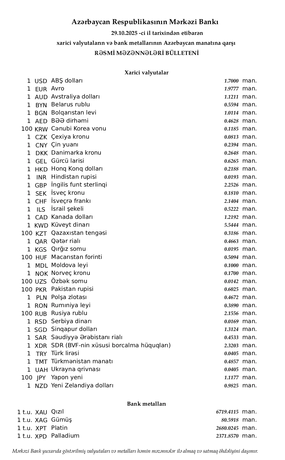 Dolların sabah üçün rəsmi məzənnəsi müəyyən olunub