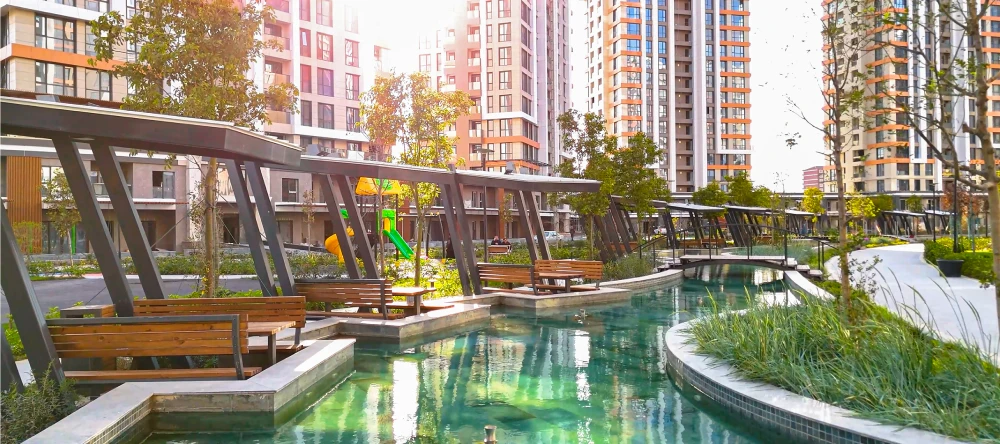(®) Böyük şəhərlərdə yaşayış rahatlığını müəyyən edən əsas amillərdən biri də mənzilin rahatlığı ilə yanaşı, onun ətraf mühitidir. Son dövrlərdə uşaqların oynaya biləcəyi, ailənin dincələ biləcəyi, təbiətə yaxın, təhlükəsiz və funksional həyət mühiti insanların ən böyük istəklərindən birinə çevrilib.