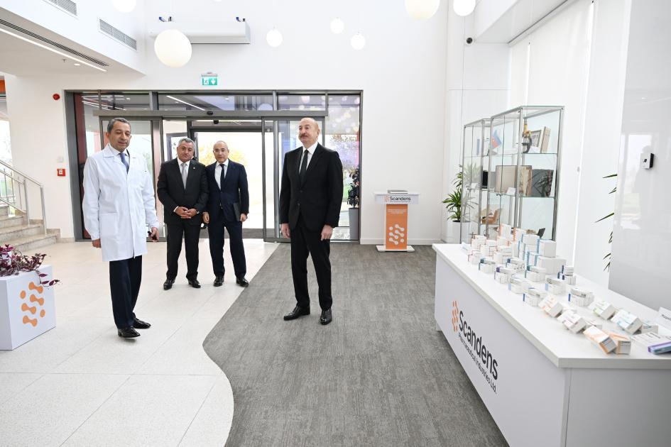 Azərbaycan Respublikasının Prezidenti İlham Əliyev Abşeron rayonunun Hökməli qəsəbəsində “Scandens Pharmaceutical Industries Ltd” MMC-nin dərman preparatları istehsalı müəssisəsinin açılışında iştirak edib.
