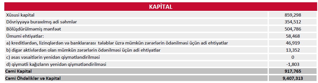 Eyni zamanda, qeyri-faiz gəlirləri 265 milyon 912 min manat olub ki, bu da illik müqayisədə 14 milyon 697 min manat və ya 5,8 faiz artım deməkdir. Komissiya gəlirlərinin və bank xidmətlərindən daxilolmaların artması qeyri-faiz gəlirlərinin sabitliyini qoruyub.