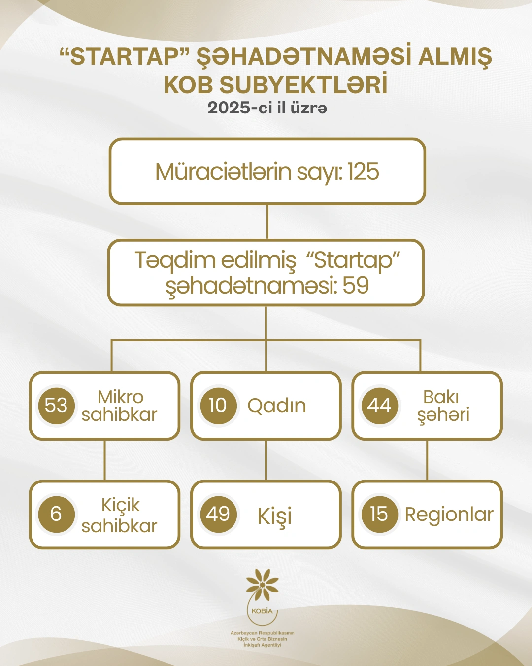 Agentliyin yaydığı məlumatda bildirilir ki, Nazirlər Kabinetinin 29 yanvar 2021-ci il tarixli Qərarı ilə təsdiq edilmiş “Startapın müəyyən olunması meyarları”na əsasən Ekspertlər Şurası tərəfindən 59 KOB subyektinə “Startap” şəhadətnaməsinin verilməsi barədə qərar qəbul olunub. Şəhadətnamə almış sahibkarların 48-i hüquqi, 11-i fiziki şəxs olmaqla, 53-ü mikro və 6-sı kiçik sahibkardır. 44 startap Bakı şəhərindən, 15-i isə regionlardandır. Şəhadətnamə almış sahibkarların 10-u qadın sahibkardır. Layihələrin 4-ü “yaşıl layihə”dir. “Startap” şəhadətnaməsi almış biznes subyektləri istehsal və xidmət sektorlarında fəaliyyət göstərir, startapların əsas istiqamətləri maliyyə, təhsil və səhiyyə texnologiyaları, e-ticarət və rəqəmsal marketinq, rəqəmsal ödəniş sistemləri və s. sahələrdə innovativ həlləri özündə ehtiva edir.