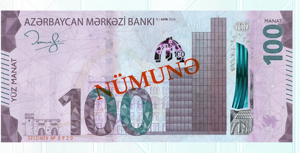 Marja.az xəbər verir ki, Azərbaycan Mərkəzi Bankı yenilənmiş dizayna və ən son mühafizə elementlərinə malik 100 manatlıq pul nişanının 15 iyul 2026-cı il tarixindən tədavülə buraxılmasını elan edir.