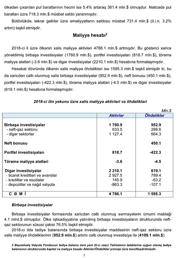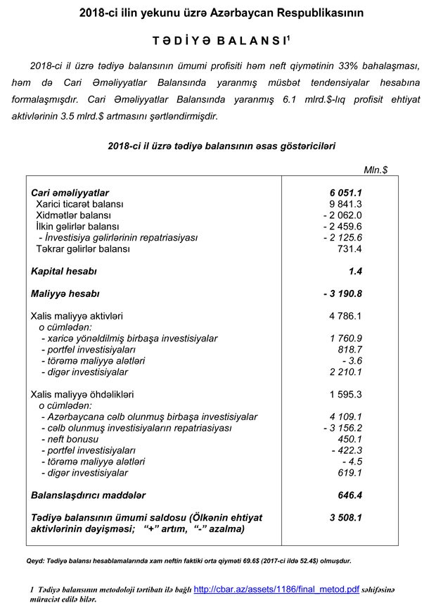 Qeyd edək ki, tədiyə balansı hesablamalarında xam neftin faktiki orta qiyməti 69,6 dollar (2017-ci ildə 52,4 dollar) olub.