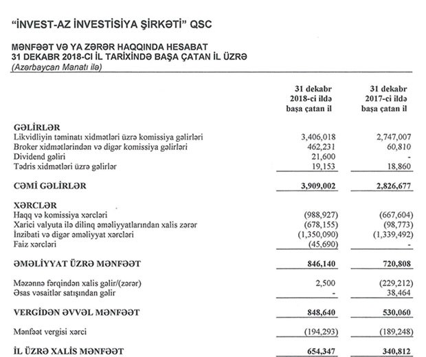 "İnvest-AZ"ın xalis mənfəəti 2 dəfəyə yaxın artıb - 2018-İN NƏTİCƏLƏRİ