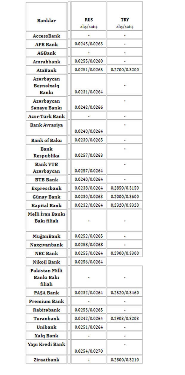 Yapı Kredi Bank Azərbaycan | 1.6985 | 1.7025 | 1.8535 | 1.9010 |