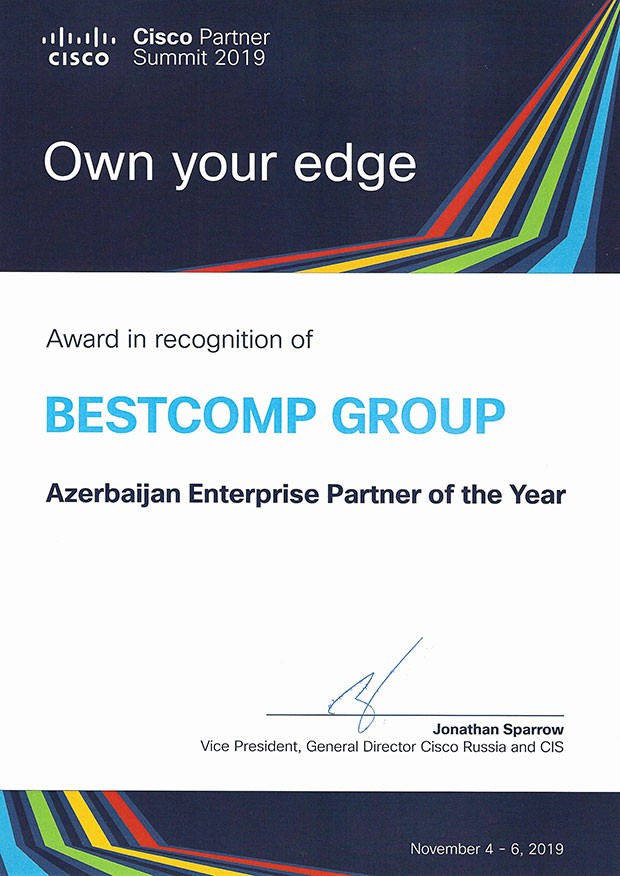 Mükafat CISCO-nun Avropa üzrə vitse-prezidenti Odysseas Çaralambousun, RMDB üzrə vitse-prezidenti Jonathan Sparrou və MDB ölkələri üzrə partnyor menecer Sergey Kravçukun iştirakı ilə keçirilən mükafatlandırma mərasimində "BestComp Group" şirkətinin Müşahidə Şurasının sədri Rauf Həsənova təqdim olunub.