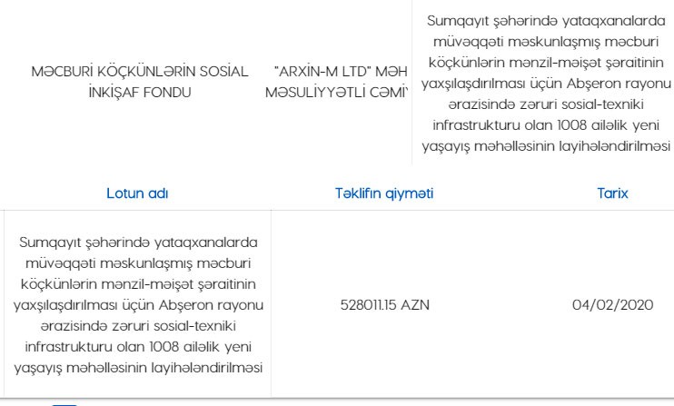 "Marja" xəbər verir ki, Məcburi Köçkünlərin Sosial İnkişaf Fondu (MKSİF) Abşeron rayonunda yaşayış kompleksinin layihələndirilməsini “Arxin-M Ltd” MMC şirkətinə tapşırıb. Fond və Şirkət arasında bağlanılmış müqavilənin məbləği 528 min 11 manatdır.
