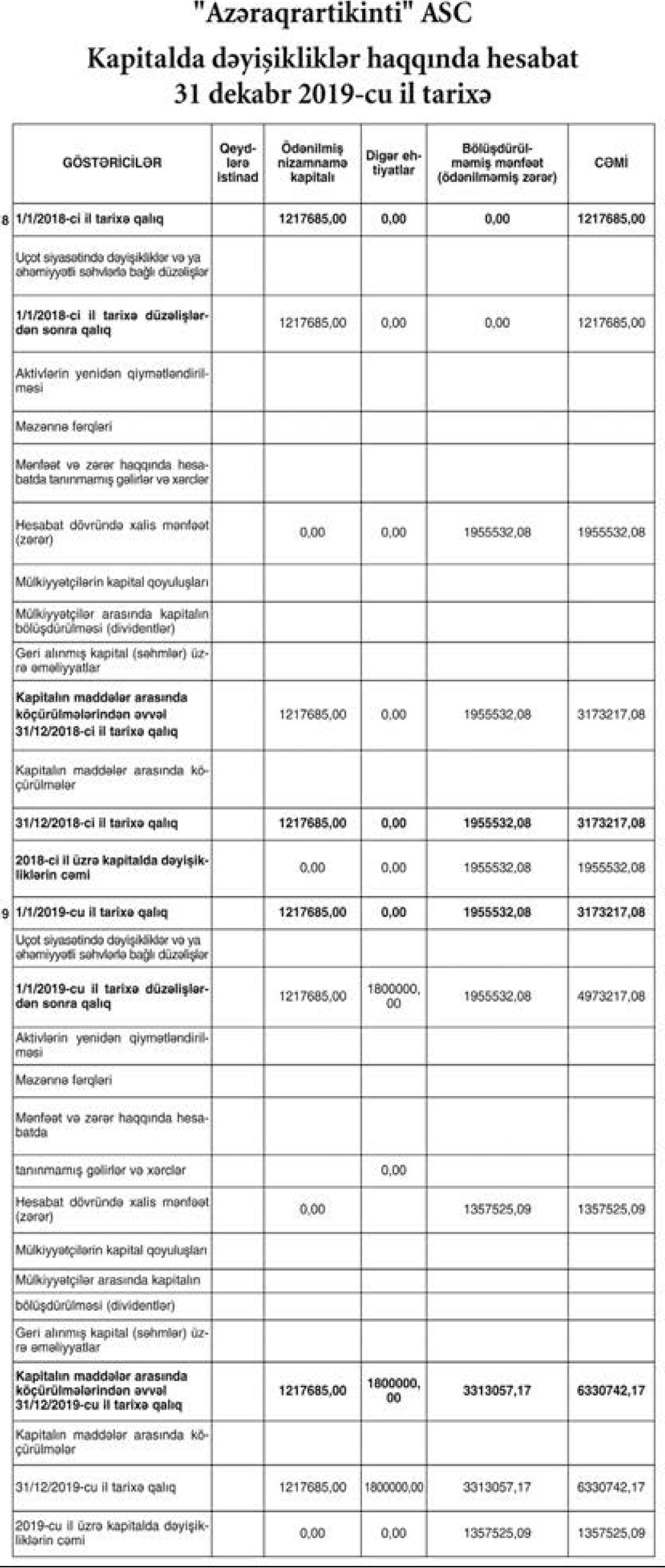 Marja şirkətin maliyyə hesabatlarına istindən xəbər verir ki, 2019-cu ildə “Azəraqrartikinti”nin əsas əməliyyat gəlirləri 131 milyon 507 min manat təşkil edib. Şirkət 2018-ci ildə 105 milyon 797 min manat əsas əməliyyat gəlirləri əldə etmişdi.