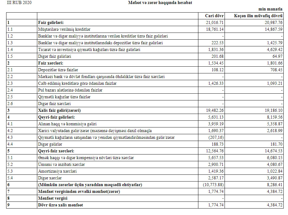 “AFB Bank” ASC 2020-ci ilin 9 ayını 1 milyon 775 min manat xalis mənfəət ilə başa vurub.