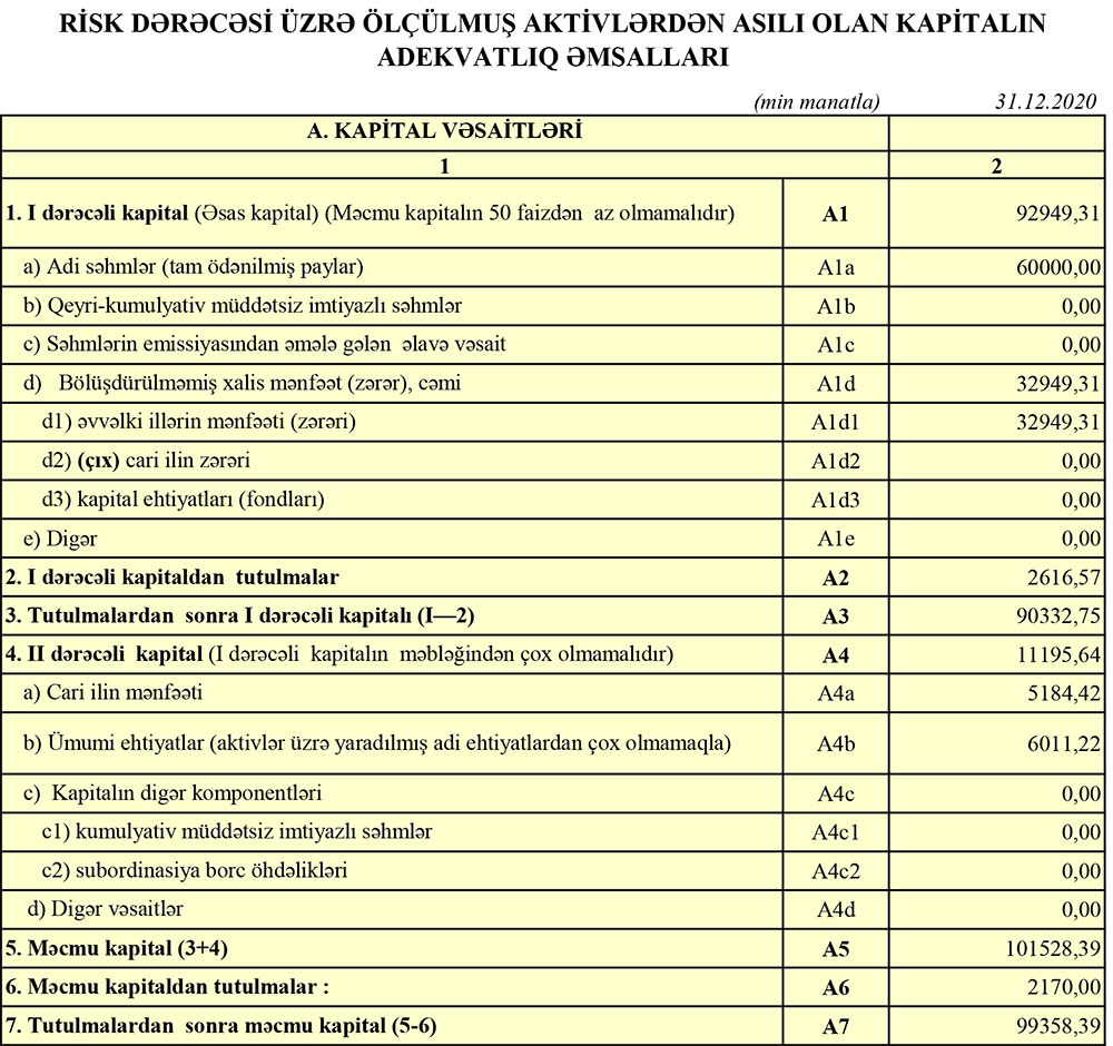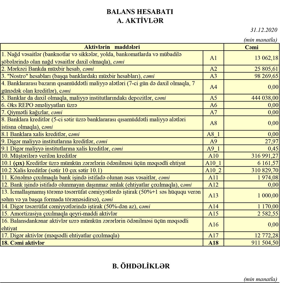 2019-cu ildə faiz xərcləri 15 milyon 880 min manat ikən, 2020-ci ildə 16 milyon 783 min manat, 2019-cu ildə qeyri-faiz xərcləri 12 milyon 976 min manat ikən 2020-ci ildə 14 milyon 980 min manat təşkil edib.