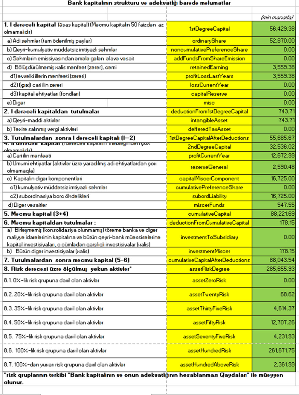 31 Dekabr 2020-ci il tarixində Bank of Baku 88 milyon 43 min manat məcmu kapitala malik olub. 31 Dekabr 2019-cu il tarixində "Bank of Baku" 54 milyon 224 min manat məcmu kapitala malik idi.