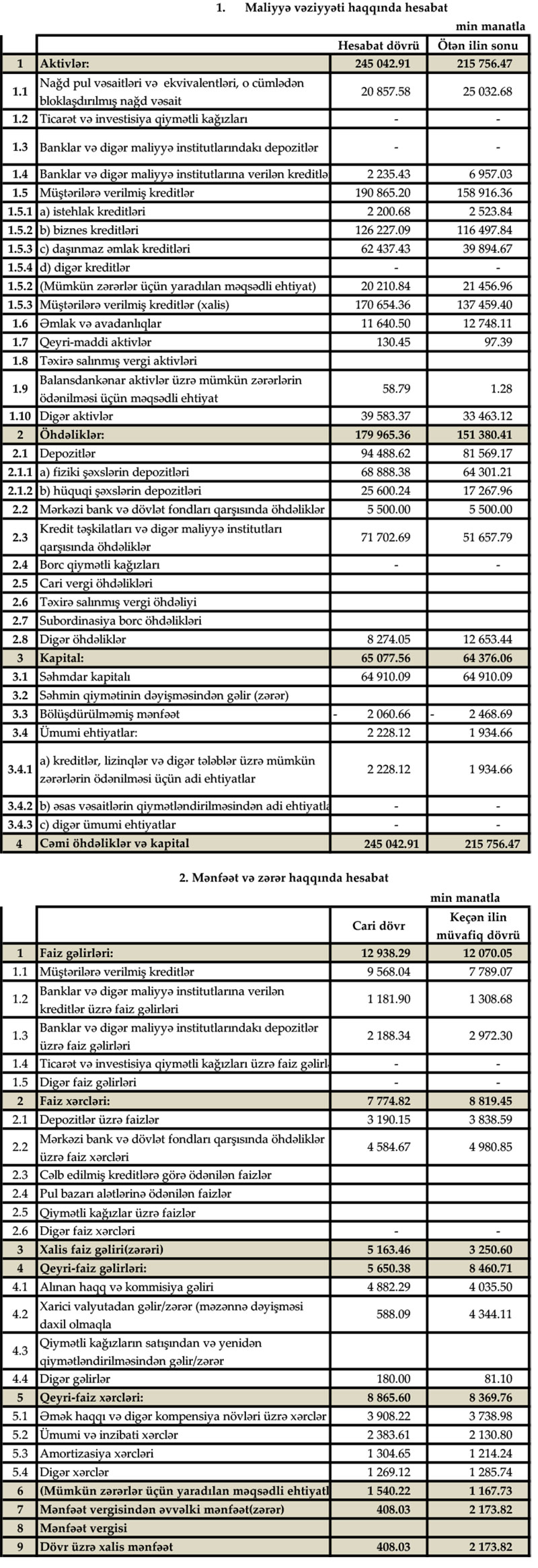Bank 2019-cu ildə 3 milyon 342 min manat əməliyyat mənfəətindən ehtiyata 1 milyon 168 min manat ayırmışdı.