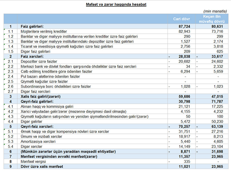 Bankdan Marja-ya daxil olmuş press-relizdə qeyd edilib ki, 31 dekabr 2020-ci il tarixə bankın əldə etdiyi mənfəət (prudensial hesabat üzrə) 11 milyon manat təşkil edib.