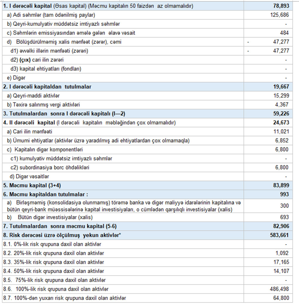 Məlumatda qeyd edilib ki, Bankın kapitalı (prudensial üzrə) 97 milyona çatıb.