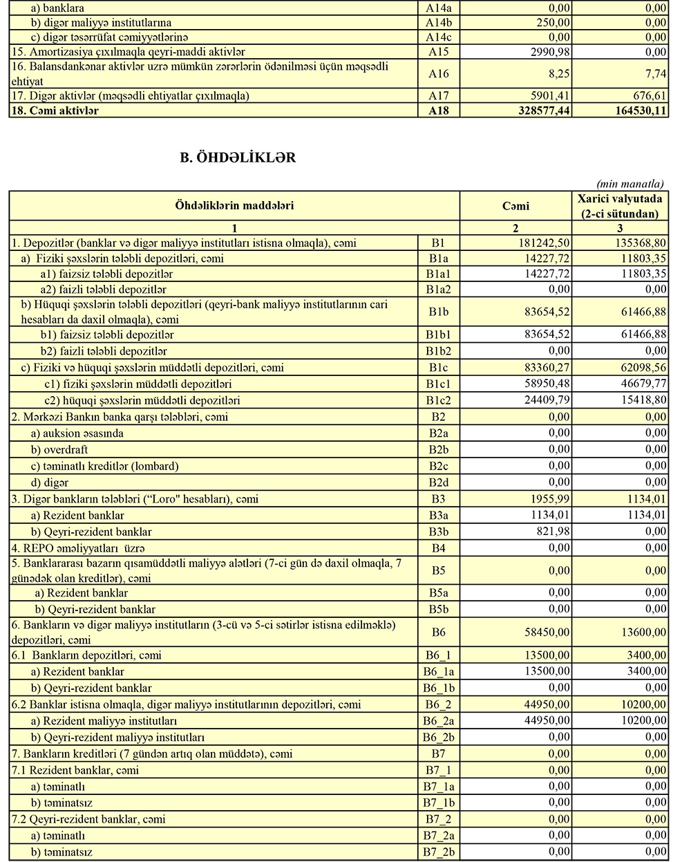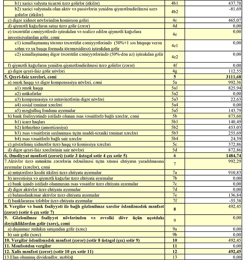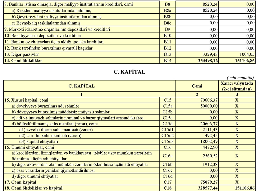 İlk rübdə Bankda cəmi depozitlər isə 151 milyon 868 min manatdan 181 milyon 242 min manata yüksəlib (29 milyon 374 min manat artım).