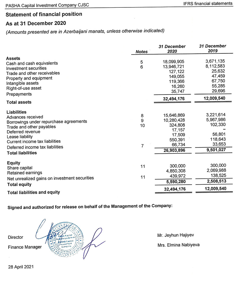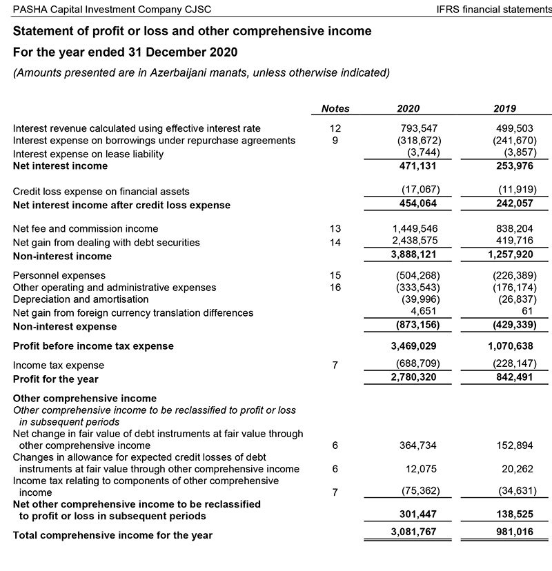 "PAŞA Kapital İnvestisiya Şirkəti" QSC 2020-ci ili 2 milyon 780 min manat xalis mənfəət ilə başa vurub, bu, 2019-cu illə müqayisədə 3,3 dəfə çoxdur. "PAŞA Kapital" 2020-ci ili 842 min manat xalis mənfəət ilə bağlamışdı.
