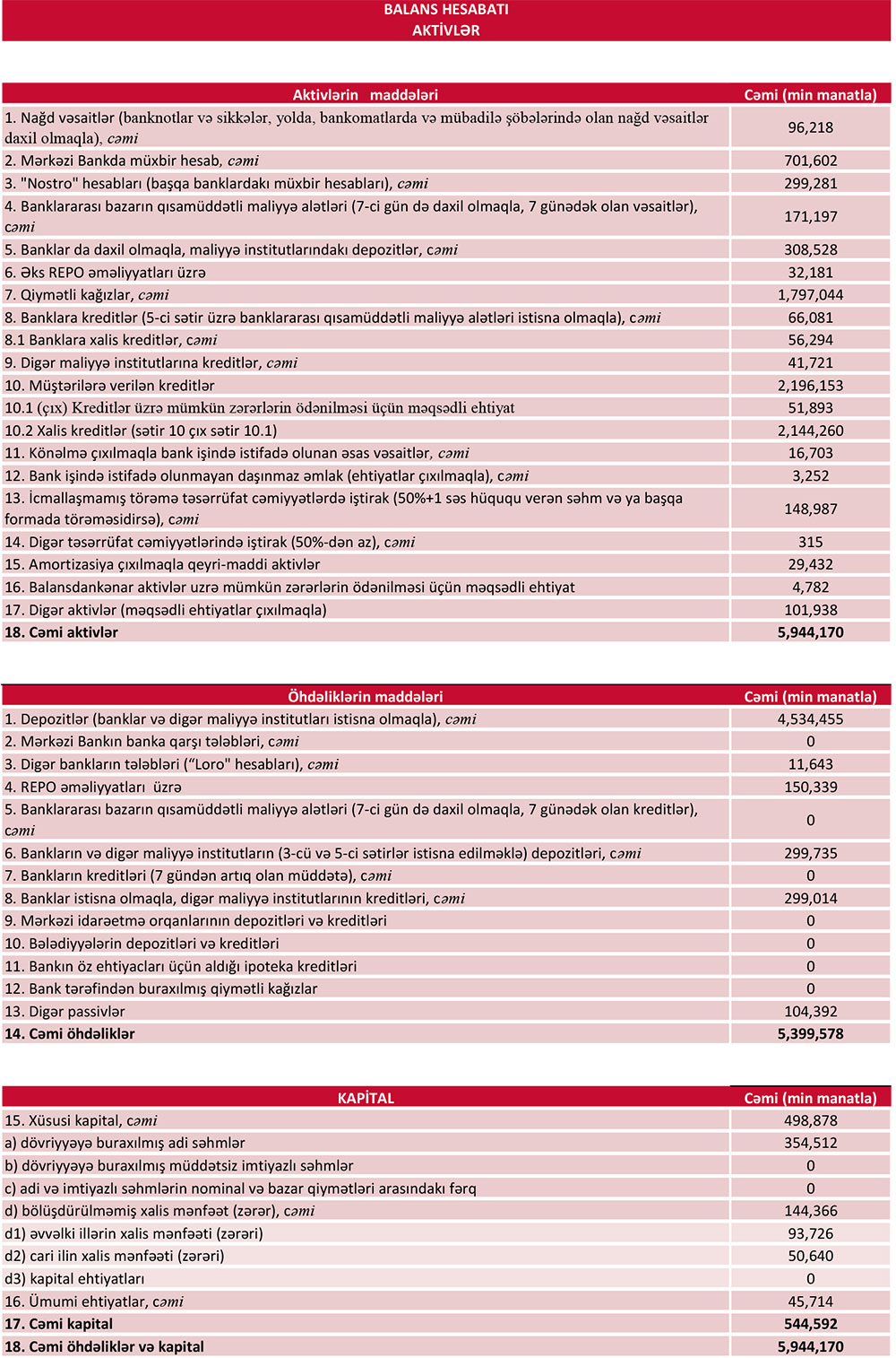 AKTİVLƏRİ 6 MİLYARD MANATA YAXINLAŞIB, KREDİTLƏR ARTIB